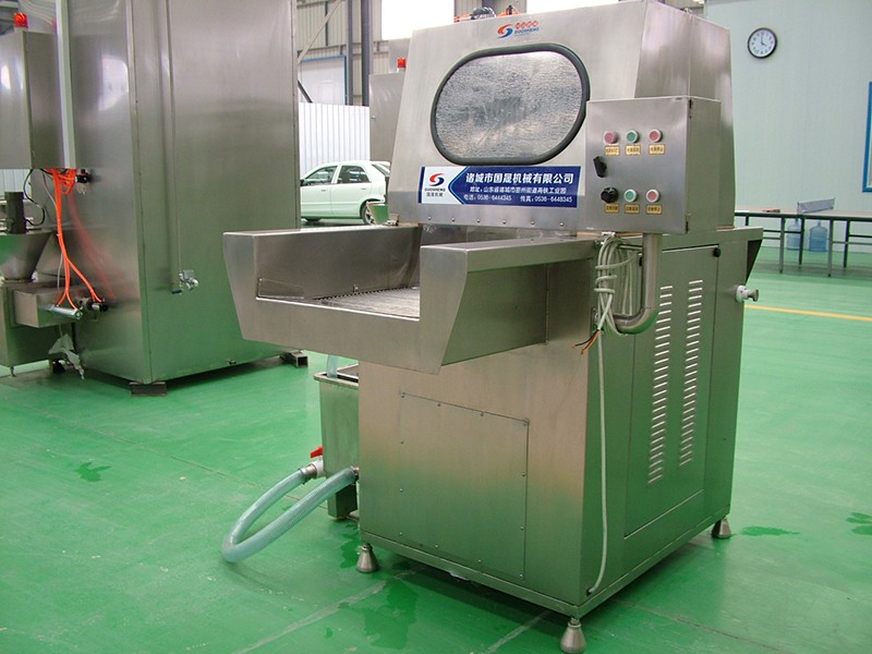 本機(jī)可將鹽水及輔料配制的腌漬均勻地注射到肉塊中,縮短了腌漬時(shí)間,大大提高了肉制品的口味及出口率??筛鶕?jù)工藝師要求調(diào)節(jié)注射壓力,腌漬劑均勻連續(xù)入肉中,達(dá)到理想的注射效果。本機(jī)設(shè)計(jì)嚴(yán)謹(jǐn)、結(jié)構(gòu)合理、操作簡(jiǎn)便,設(shè)有自動(dòng)保護(hù)裝置,當(dāng)注射針碰到硬物時(shí)注射針隨之抬起,不受損壞,是肉制品加工過(guò)程中的理想設(shè)備。