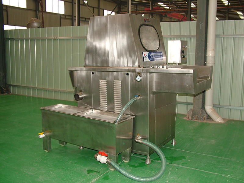 本機(jī)可將鹽水及輔料配制的腌漬均勻地注射到肉塊中,縮短了腌漬時(shí)間,大大提高了肉制品的口味及出口率??筛鶕?jù)工藝師要求調(diào)節(jié)注射壓力,腌漬劑均勻連續(xù)入肉中,達(dá)到理想的注射效果。本機(jī)設(shè)計(jì)嚴(yán)謹(jǐn)、結(jié)構(gòu)合理、操作簡(jiǎn)便,設(shè)有自動(dòng)保護(hù)裝置,當(dāng)注射針碰到硬物時(shí)注射針隨之抬起,不受損壞,是肉制品加工過程中的理想設(shè)備。