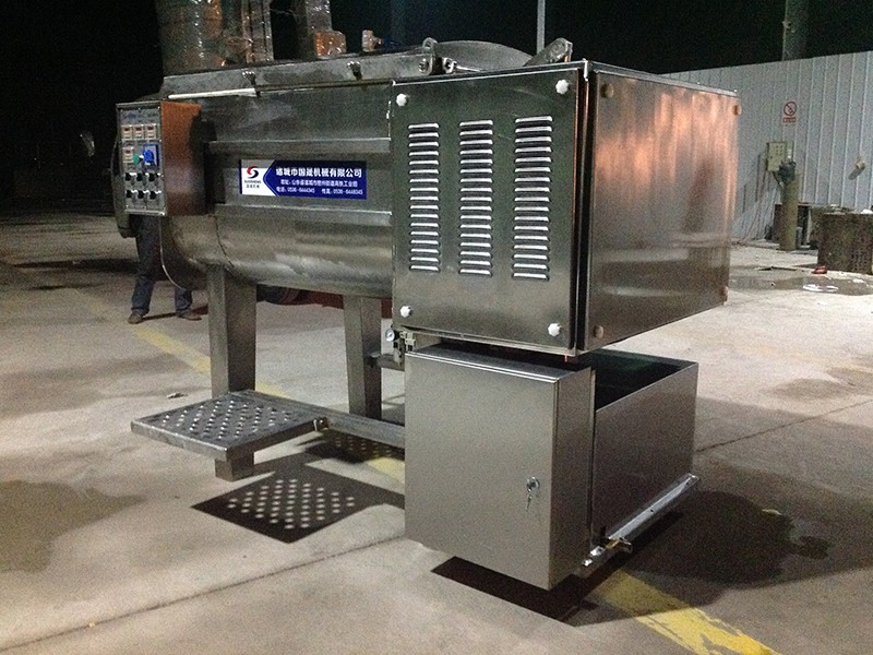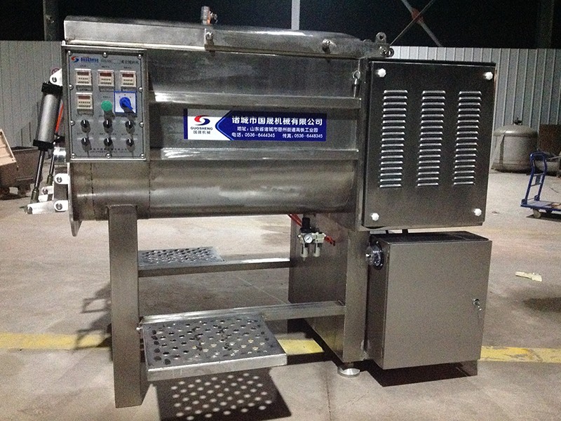 真空拌餡機(jī)是用于混料的設(shè)備,效率高,便于操作,是制作風(fēng)干腸類(lèi)產(chǎn)品、粒狀、泥狀混合腸類(lèi)產(chǎn)品、丸類(lèi)產(chǎn)品的設(shè)備,同時(shí)也是生產(chǎn)水餃、餛飩類(lèi)面食產(chǎn)品的可選設(shè)備。 通過(guò)真空裝置使物料處于負(fù)壓狀態(tài)。使物流充分膨脹,無(wú)氣泡,彈性好,色澤鮮艷。并大限度的提取蛋白質(zhì),是改善產(chǎn)品品質(zhì)的理想設(shè)備。采用平行雙軸結(jié)構(gòu),斜板式槳葉,物料在料斗中翻動(dòng)的同時(shí)作圓周運(yùn)動(dòng),使各種物料攪拌的更加均勻.采用雙速雙動(dòng)力,根據(jù)所拌餡料的種類(lèi)及工藝選擇不同的轉(zhuǎn)速和不同的運(yùn)轉(zhuǎn)方式進(jìn)行攪拌。真空密封裝置全部采用符合衛(wèi)生標(biāo)準(zhǔn)的密封件。在真空狀態(tài)下,餡料攪拌均勻,充分膨脹,彈性好,色澤鮮艷并大限度地提高蛋白質(zhì)。上蓋及排料門(mén)的密封用硅膠條,操作方便,可靠耐用。 整機(jī)采用不銹鋼,易于清洗,美觀(guān)大方。符合國(guó)家衛(wèi)生標(biāo)準(zhǔn)。電氣安全符合國(guó)家標(biāo)準(zhǔn)。