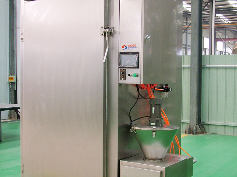 煙熏香味料為淡黃色至棕色液體,具有濃郁的煙熏香氣,可代替?zhèn)鹘y(tǒng)煙熏工藝,使煙熏食品工業(yè)實(shí)現(xiàn)機(jī)械化、電氣化、連續(xù)化生產(chǎn)。 煙熏爐主要與蒸煮、煙熏、烘干、排風(fēng)等功能,適用于各種腸類的加工制造,還可烤魚(yú)、烤各種肉類。全自動(dòng)鹽水注射機(jī) 本機(jī)可將鹽水及輔料配制的腌漬均勻地注射到肉塊中,縮短腌漬時(shí)間,大大提高了肉制品的口味太出口率真??筛鶕?jù)工藝要求調(diào)節(jié)壓力,腌漬劑均勻連續(xù)注入肉中,達(dá)到理想的注射效果。本機(jī)設(shè)計(jì)嚴(yán)謹(jǐn),結(jié)構(gòu)合理,操作簡(jiǎn)便,是肉制品加工過(guò)程中的理想設(shè)備。本機(jī)采用不銹鋼制造,設(shè)計(jì)合理,結(jié)構(gòu)嚴(yán)謹(jǐn),操作簡(jiǎn)單,清洗方便,清潔衛(wèi)生。本機(jī)設(shè)有保護(hù)裝置,當(dāng)注射針碰到硬物時(shí)注射針隨之抬起,不受損壞。