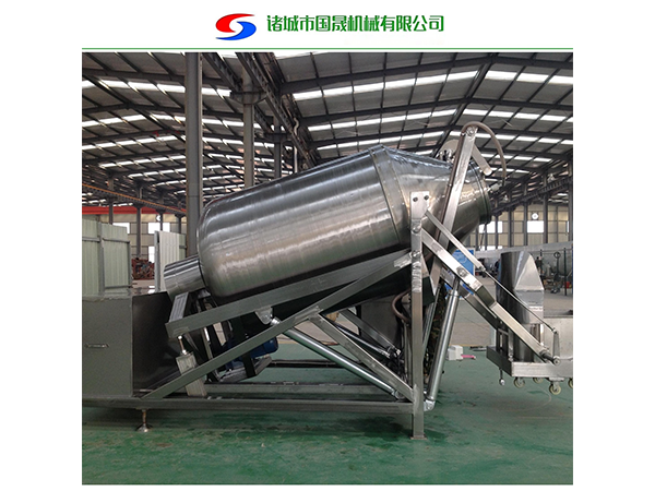 真空滾揉機是在真空狀態(tài)下,利用物理沖擊原理,讓肉塊或肉餡在滾筒內上下翻動,相互撞擊、摔打,從而達到按摩、腌漬作用。腌漬液被肉充分地吸收,增強肉的結合力及彈性,提高產(chǎn)品的口感及斷面效果;可以增強保水性,增加出品率;可以改善產(chǎn)品的內部結構。新一代的全自動真空滾揉機除具有真空滾揉機的特點外,還具有電腦控制與變頻技術的功能。更新增加了遙控操作系統(tǒng),是機器使用更安全,更方便,更加節(jié)能高 效。整機采用不銹鋼制造,結構緊湊,滾筒兩端均采用旋壓式封帽結構,zui大的增加滾筒內的摔打空間,使?jié)L揉產(chǎn)品的效果均勻,噪音小,性能可靠,操作簡便,使用效率更高。